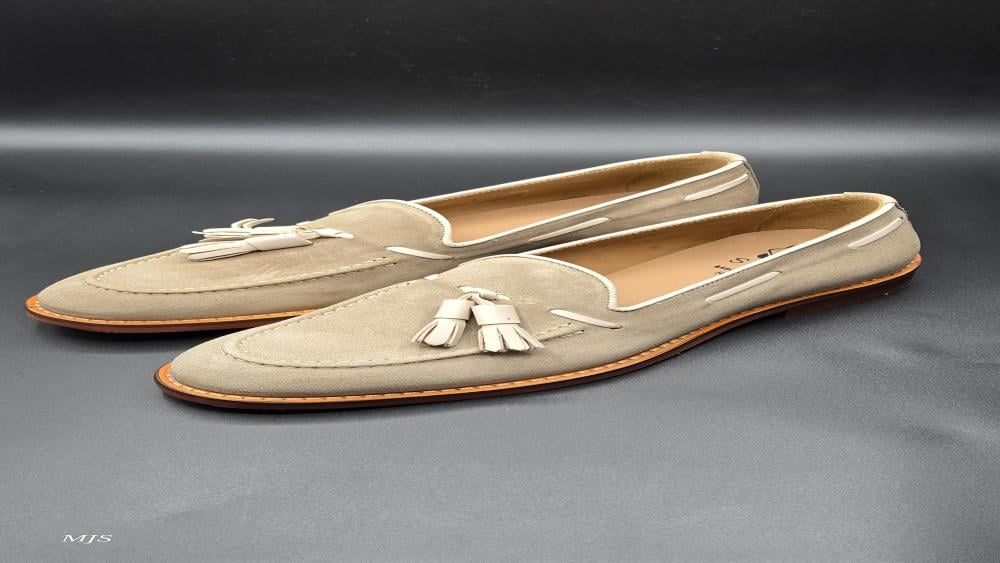 حذاء نسائي - بحزام مغلق من الخلف باللون البيج